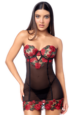 • Babydoll sexy à armatures avec broderie de roses