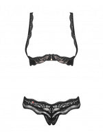 L'ensemble Luvae offre un soutien-gorge ouvert avec armatures qui mettra en valeur votre poitrine et un string ouvert à l'entrejambe pour ajouter du piquant à vos soirées épicées.