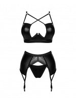 - ensemble de lingerie noir contenant un string, un soutien-gorge et un porte-jarretelles