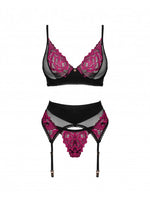 Célébrez le temps passé ensemble ou offrez-vous un cadeau de rêve en choisissant un magnifique ensemble Rosenty ! Sentez vos sens s'affoler lorsque vous enfilez ce magnifique string, soutien-gorge et porte-jarretelles assorti, décoré de ce motif floral unique. Laissez-vous tenter par une pincée de folie et vous ne le regretterez pas !