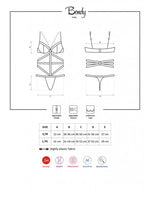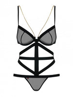 Ce body très excitant est un véritable dessin sur le corps. La partie haute ajustable et avec armatures est sublimée d'une chaîne bijoux, tandis que les bandes du ventre sont élastiques et réglables? Ce body sexy se termine avec une partie string irrésistible.
