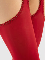 Séduisant bas Rouge. Ouverture arrondi et sexy au niveau des cuisses. Composition : 82% Polyamide, 16% Élasthanne