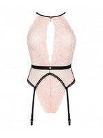 Alors, pour vous faciliter le choix de la lingerie pour votre soirée parfaite, nous avons créé Lilines – teddy avec porte-jarretelles ! Nous avons combiné le subtil motif de dentelle florale avec une nuance de rose délicat, une coupe extrêmement féminine et des ajouts contrastés en noir profond.