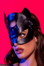 Réalisé en similicuir doux au toucher, il se distingue par des lignes épurées et des courbes pointues qui encadrent les yeux et renforcent l’intensité du regard.