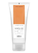 Mixgliss Eau est un lubrifiant à l'eau sensuel légèrement chauffant et intensifiant, à l?arômenaturel de cannelle. Ce lubrifiant chauffant apporte une douce sensation de chaleur qui stimule et rend plus sensible leszones intimes de la femme comme de l'homme. Ce lubrifiant intime chauffant est d'une contenance de 70ml.SPÉCIFICATIONS TECHNIQUES? Arôme naturel de cannelle.? Ingrédients : aqua, propylene glycol,glycerin, aroma, hydroxyethylcellulose,phenoxyethanol, sodium polyacrylate,allantoin, ethylhexylglycerin, aloe vera.? Usage intime; compatible avecpréservatif et sextoy. ? Précautions: en cas de contact avecles yeux, rincer à l?eau. En cas deréaction allergique, arrêter l?utilisation.Tenir à l?abri de la lumière & la chaleur. ? Fabriqué en France sous contrôlepharmaceutique? Contenance: 70 ml ? Pack: tube + capsule service + scellé? Lot + date de péremption: voir soudure ? Validité: 60 mois. ? Langues pack: FR, EN, AL, NL, ES, IT.