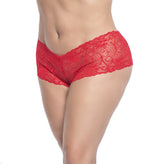 Une nécessité absolue! Joli shorty rouge, grande taille, en dentelle strech ultra doux.