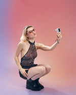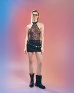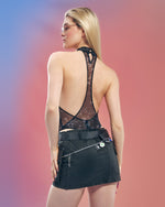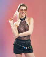 Body transparent avec un col court et un design audacieux. Le tissu extensible s’adapte parfaitement au corps, tandis que sa couleur unique améliore le style original. Un pendentif en argent ajoute une belle touche joaillière.