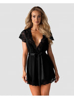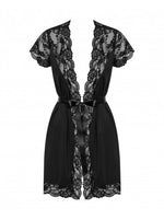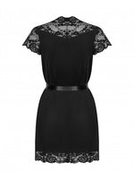 Conçu dans une matière douce et délicate, il s'associe à une dentelle noire mettant en exergue votre féminité. Une ceinture en satin se noue à la taille. Pour plus de confort les manches sont évasées et donnent un coté sensuel à votre silhouette.
