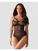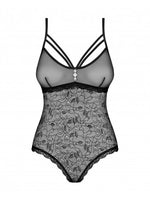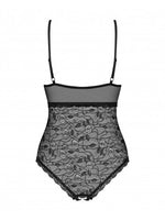 Ce body vous rendra belle et redoutable à la fois. De couleur noir semi transparent, il sublimera vos courbes. De jolis motifs à fleur et un bijou sublimeront ce body.